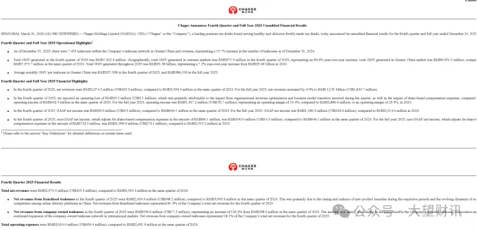 2026年3月31日,霸王茶姬对外发布2025年完整年度财务数据,并同步举行年度业绩交流会议。