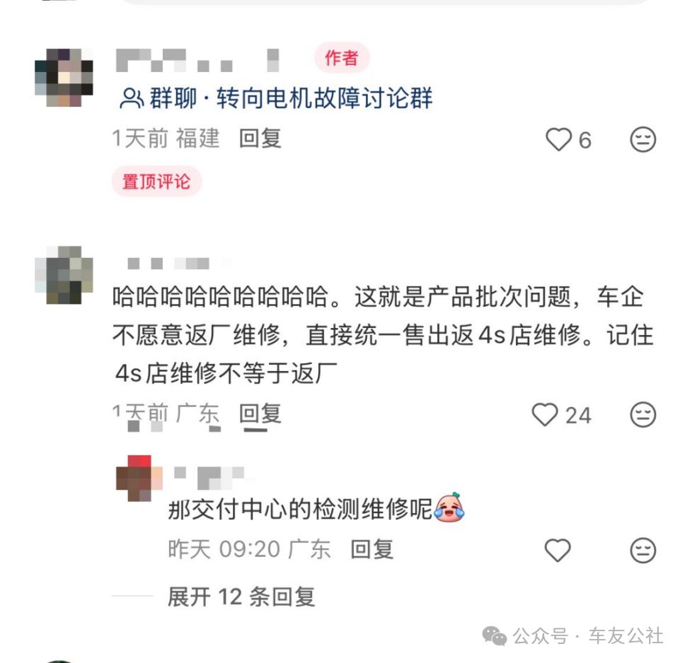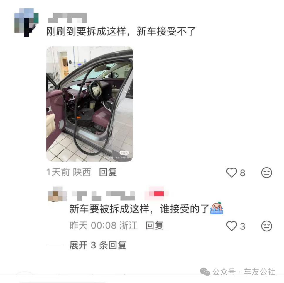 徐女士告诉车友公社,接到回店检测通知后,她通过社交媒体平台、车主群等渠道了解到,并非只有她自己的车出现故障,而是同批次大量车辆均被通知回店检测。让车主们更无法接受的是,该检测需要对新车进行拆车操作。
