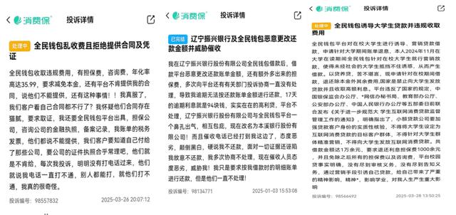 和大多数平台一样,消费金融都是消费者投诉重灾区。全民钱包除了比较共性的36%的“高”利率、通过轰炸通讯录好友进行催收外,还有不提供借款合同,恶意更改还款金额,对在校大学生放款。