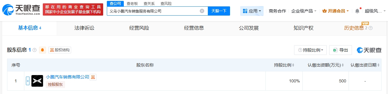 天眼查App显示,近日,义乌小鹏汽车销售服务有限公司成立,法定代表人为赵大武,注册资本500万人民币,经营范围包括汽车销售、新能源汽车整车销售、新能源汽车电附件销售、机动车充电销售等。股东信息显示,该公司由小鹏汽车销售有限公司全资持股。