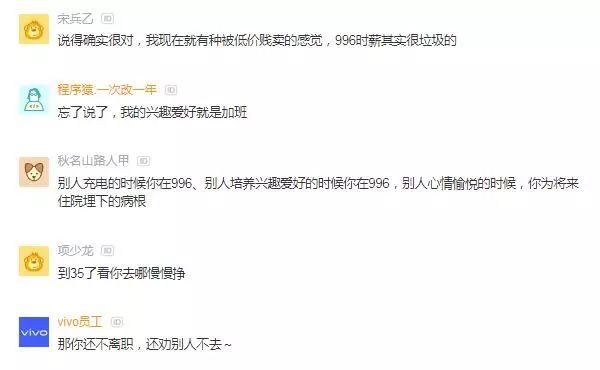 有网友就说到。你这句话给我说明白了,我知道该怎么选了。到35了看你去哪慢慢挣,996害人不浅,但是让老板赚足了腰包。