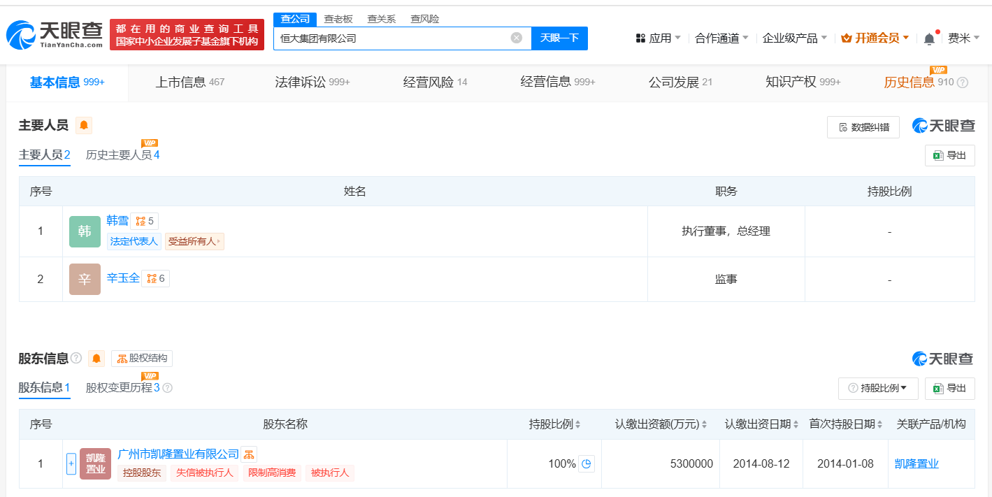 天眼风险信息显示,恒大集团有限公司现存69条被执行人信息,被执行总金额超74亿元。此外,该公司还存在多条限制消费令、失信被执行人(老赖)及终本案件信息。