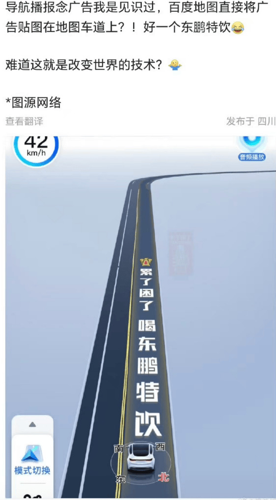 想象一下,你正驾驶着车辆,全神贯注于前方的路况,突然,百度地图的屏幕上跳出一个巨大的广告弹窗——“累了困了,喝东鹏特饮”,那鲜艳的橙色包装几乎占据了整个屏幕,你的视线被无情地吸引过去。就在你努力想要将注意力拉回路面时,导航语音却提示你立即右转。那一刻,你是否感到前所未有的恐慌和愤怒?