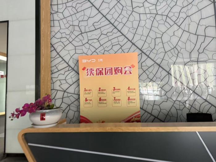 5月28日下午,新黄河记者来到比亚迪济南乾盛店,店外的招牌仍未撤下,店内没有开灯,新车交付区和大部分区域都空空如也,“续保团购会”的广告牌仍未撤下,店内摆放着比亚迪招募令的广告。