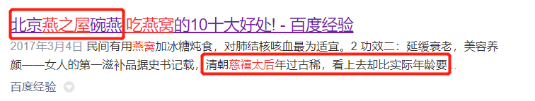 在一些宣传燕之屋的文章里,经常能看到“清朝的皇帝因食用燕窝而长寿、慈禧太后靠燕窝年过古稀容颜依旧”等表述,暗示燕之屋燕窝延年益寿的功效。