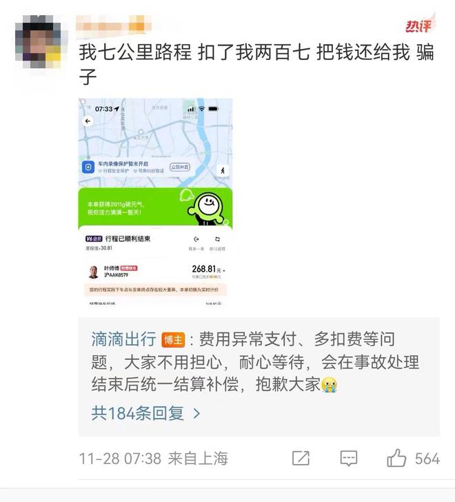 11月28日一大早,“滴滴崩了”登上微博热搜,网友纷纷留言表示自己因为叫不到车或者打不开青桔而迟到:“很多人应该没想到月底了,竟然因为这个原因全勤奖没了。”还有网友表示,滴滴服务计费也出现故障:“7公里的路程,扣了我270元。”