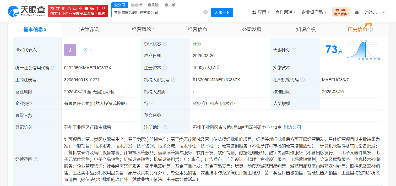 近日,苏州浦度智融科技有限公司成立,法定代表人为丁忆民,注册资本1000万人民币,经营范围含教育咨询服务、计算机软硬件及辅助设备批发、计算机软硬件及辅助设备零售、计算机系统服务、信息系统集成服务、软件开发、数据处理服务、数字内容制作服务等。