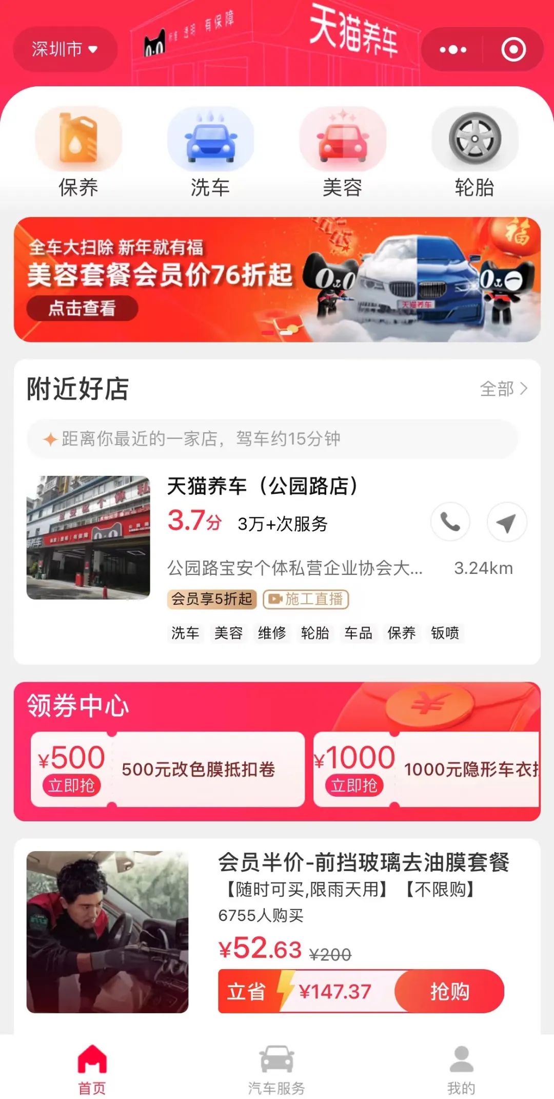 微信当中的天猫养车小程序