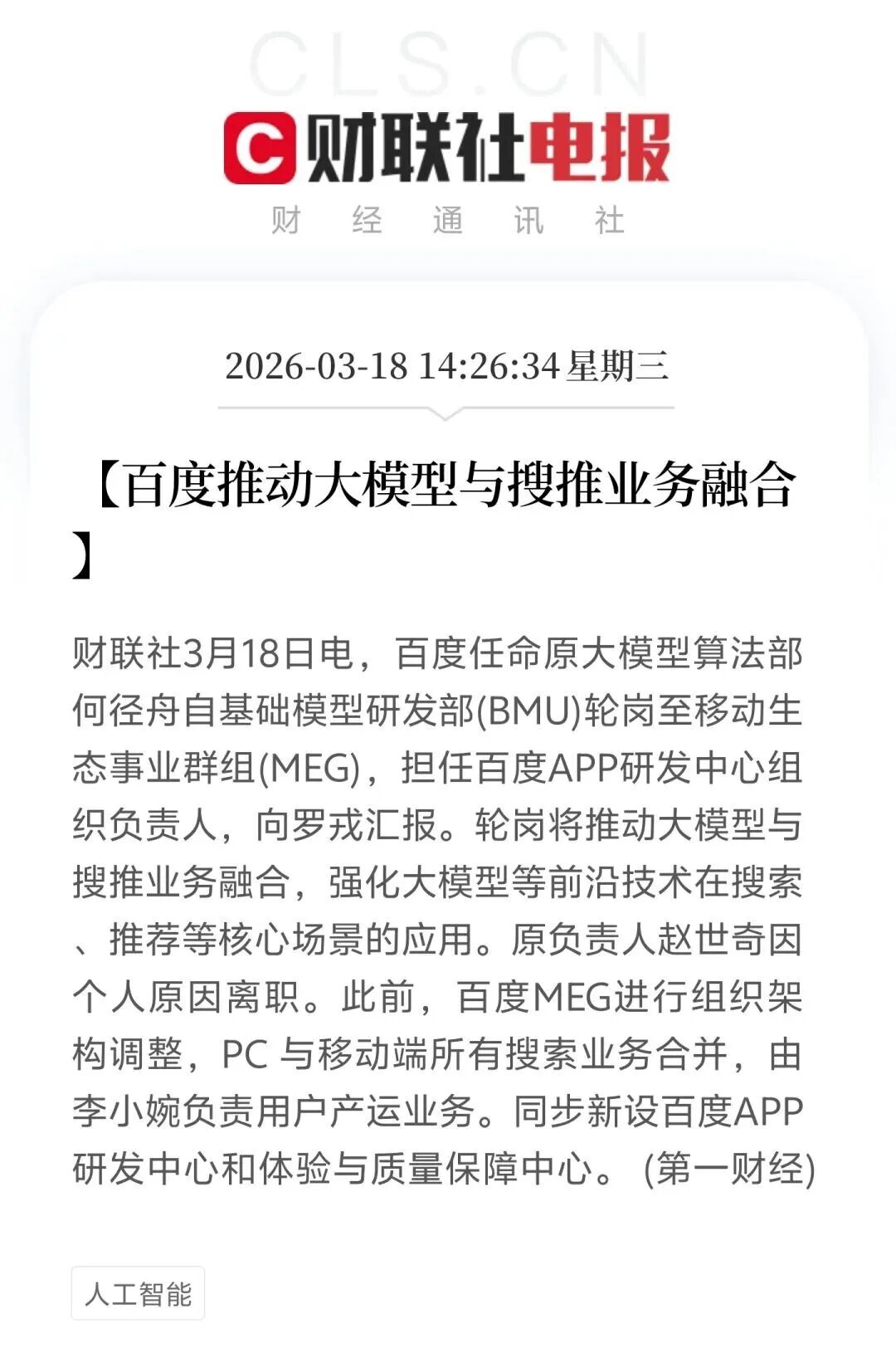 因此,对于何的挂帅,外界判断:百度希望在技术底层推动大模型与搜推业务的深度融合。