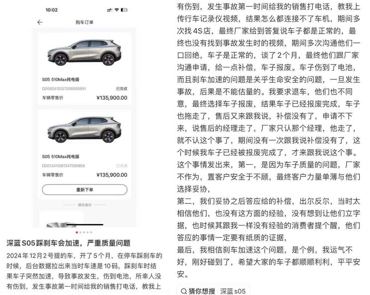 踩刹车反加速?长安深蓝制动安全疑云笼罩,消费者何去何从?快讯