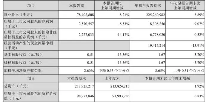 2025年顺丰三季报表现出明显的增收不增利的情况。前三季度营收为2252.61亿元,同比增长8.89%;净利润为83.08亿元,同比增长9.07%。第三季度营业收入为784.03亿元,同比增长8.21%,净利润为25.71亿元,同比下降8.53%。