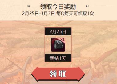 2、前6天每天领取黑钻(1天),每Q每天限1次;