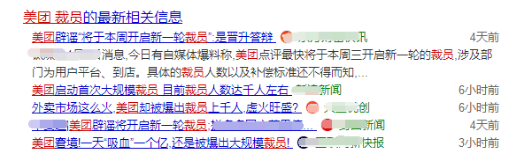 当时的职场社交讨论区里,“美团裁员只用了3分钟”,“免交接免闲扯,3分钟结束美团职业生涯”,“上海点评到店业务综合事业群裁员技术20%左右”,“大量应届生三分钟被裁”等裁员信息让备受用户关注。