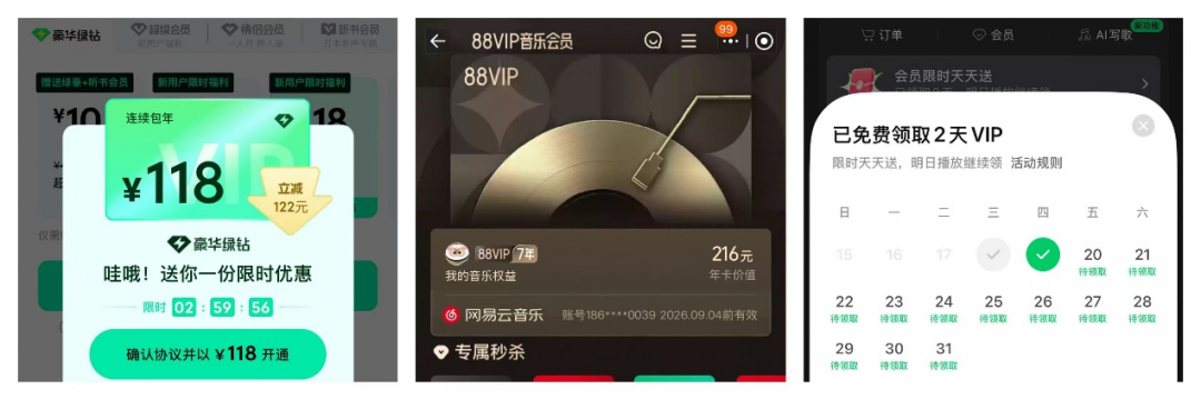 QQ音乐、酷狗音乐的会员说贵不算贵,但也不便宜,一年100出头;网易云音乐,88VIP的联名,88VIP88块钱,闲鱼卖50;字节跳动的汽水音乐,暂时可以视为免费。