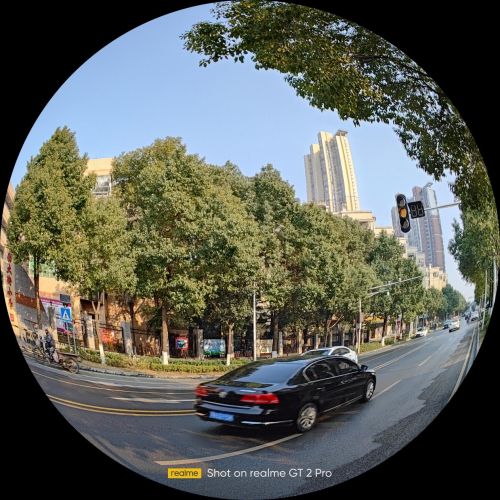 值得注意的是,此次真我GT2 Pro还全球⾸发了150°超⼴⻆镜头,⽐当前任何⼀台智能⼿机看得都⼴,带来非凡的视野和视觉冲击力;同时该机还支持鱼眼模式,使⽤该功能拍摄⼈物将更具表现⼒。