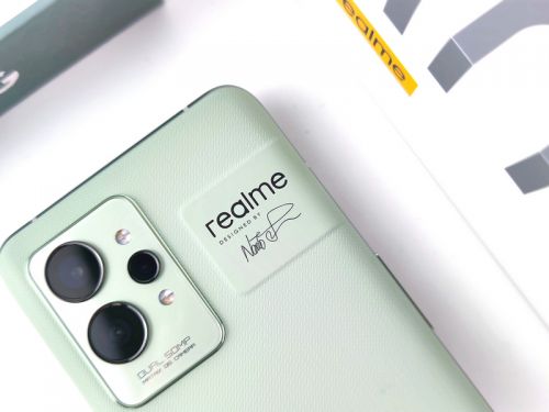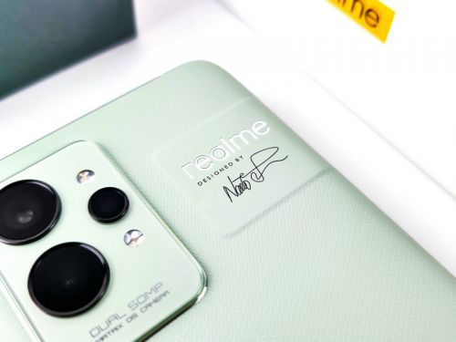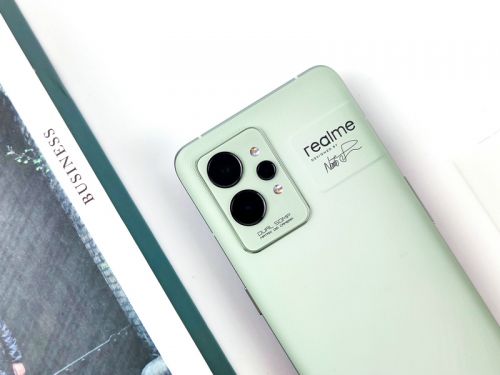 而除此之外,该机在相机模组右侧还有一块凸起的区域,上面不仅有“realme”的品牌logo,下方还有设计大师深泽直人的签名,更加凸显了该机不俗的身份。