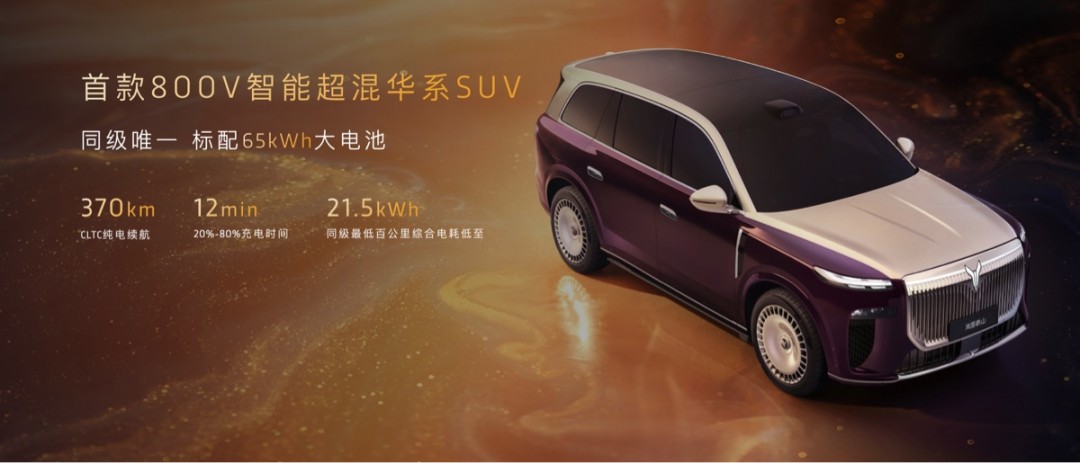 动力方面,新车搭载岚海智能超混系统,提供800V高压平台+5C超快充,配国内首款三腔空气悬架与双向 16° 后轮独立转向,可实现 5.4 米小转弯半径; CLTC纯电续航里程370km,满油满电的综合续航可达1400km,20%-80%充电时间仅需12分钟。
