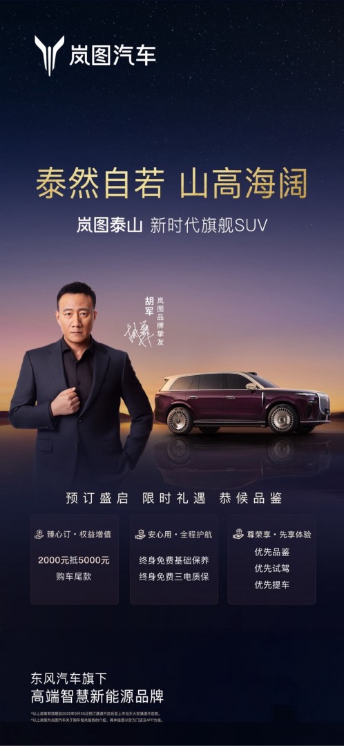 岚图全新旗舰SUV泰山发布并开启预定 将于四季度上市汽车