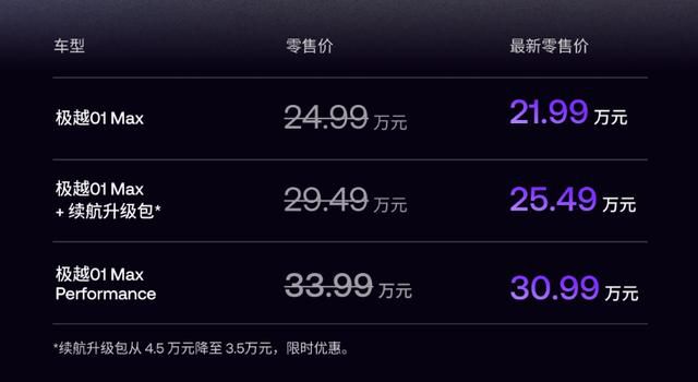 去年10月,新能源赛道优胜劣汰加剧,卷成红海时,姗姗来迟的极越01正式发布,售价为24.99万-33.99万元。