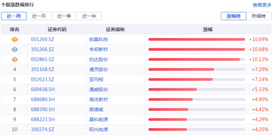证券之星光伏行业周报:中国有色金属工业协会硅业分会数据显示,本周订单签订结束,多晶硅价格持稳运行。东吴证券最新观点指出,电镀铜即将开启产业化进程,从0到1设备商率先受益。宏观方面,国家发展改革委等部门关于统筹节能降碳和回收利用、加快重点领域产品设备更新改造的指导意见,意见提到,加快制定修订一批能效强制性国家标准,按照“就高不就低”的原则,加强与重点用能产品设备能效先进水平、节能水平和准入水平的衔接协调,合理设置能效强制性国家标准各级指标。企业方面,奥联电子遭“打假”,股价四日跌超40%。