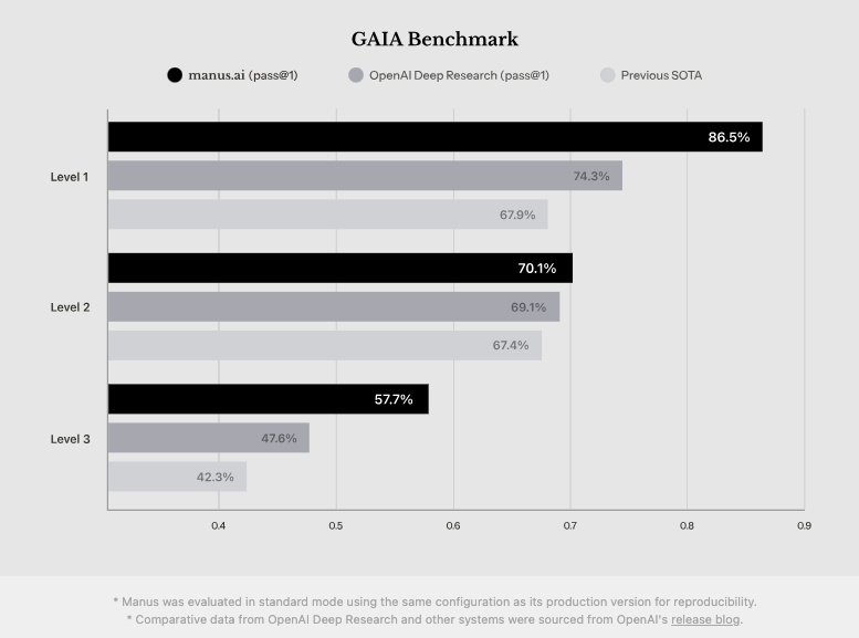 Manus在GAIA的评分超越OpenAI的DeepResearch成为GAIA评分第一。
