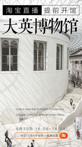 【TechWeb】6月30日消息,今天下午4点,备受期待的大英博物馆,将联合飞猪在淘宝直播进行官方全球首播。据悉,这是大英博物馆因疫情闭馆100多天后,首次对公众亮相,包括罗塞塔石碑、木乃伊在内的众多馆藏文物都将在淘宝直播间里一一亮相。