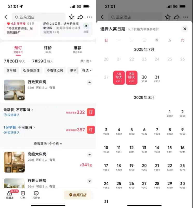 淘宝闪购则在重庆、杭州等少数地区上线了“特价酒店”入口;美团在酒店下单页面推出了专享大额外卖券;京东也同样推出了订酒店送大额外卖券的优惠。