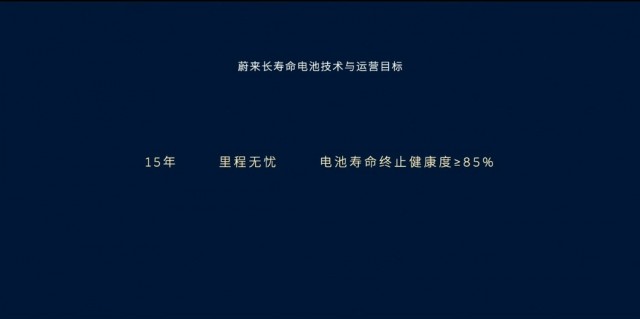 据悉,蔚来提出的目标是实现动力电池使用15年,同时保证电池寿命终止健康度不低于85%。
