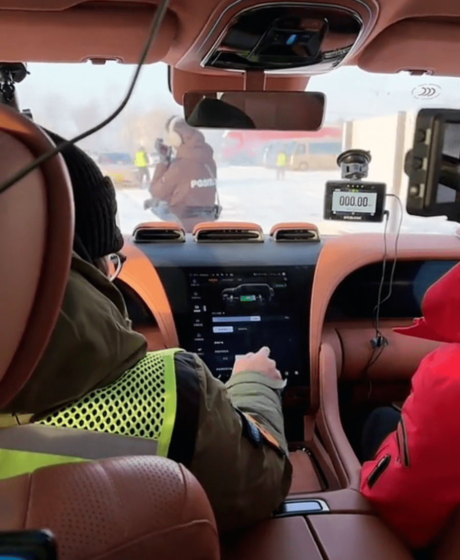 至于说为啥得在整备的时候开空调,我从懂车帝工作人员那里得到的回复是:太冷了,不开空调的话,很多拍摄设备都没法吸到车上。