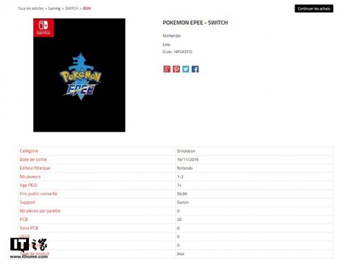 法国网站泄露《宝可梦:剑/盾》发售日期快报