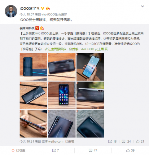 iQOO武士黑今日发售:售价最低的骁龙855+12GB内存旗舰快报