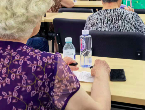 并且,在课上,老人们也都会认真做笔记,张奶奶告诉我们,“老年人学得快忘得也快,做好笔记回家方便反复联系。实在想不起来,就直接到楼下来找链接的小伙子,他们都很有耐心,也不嫌烦。”