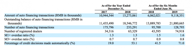 具体来看,2018年,美利车金融促成了超过23.3万单汽车融资交易,同比增长32.7%。2019年上半年,融资交易数量达到12.9万单,同比增长34.6%。截止2019年6月30日,美利车金融汽车融资交易余额为219亿元人民币,较2018年12月31日增长了18.0%。