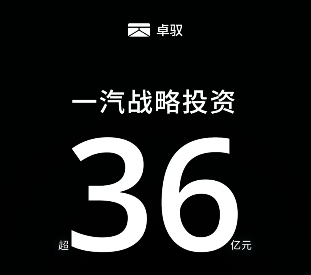 今日,卓驭科技(以下简称“卓驭”)宣布,获得来自中国第一汽车集团有限公司(以下简称“中国一汽”)超36亿元的战略投资。
