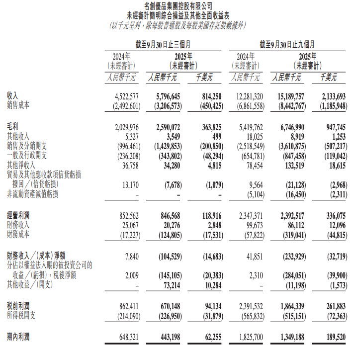 第三季度,名创优品期内利润4.43亿元,相比去年同期的6.48亿元,同比下降约31.6%。