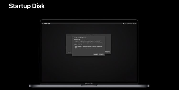 IT之家获悉,此外,启动盘是一项新功能,使用户可以为启动卷选择不同的安全模式。默认情况下启用的完全安全性提供与苹果 iOS 设备相同的最佳安全性,并允许用户从外部磁盘启动而不降低系统的安全性。
