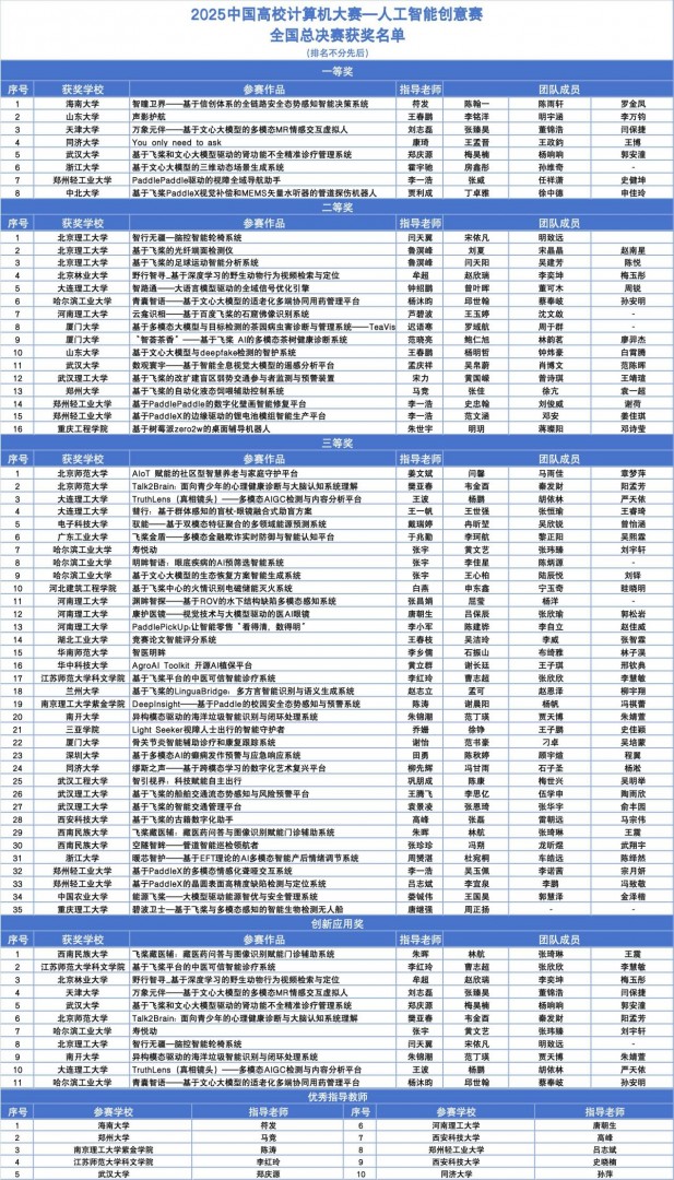 2025中国高校计算机大赛-人工智能创意赛收官 获奖名单公布快讯