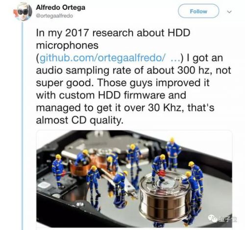 如果分析声波让精密部件振动的规律,搞清楚电压信号与声波的关系,那么,硬盘就能实现类似话筒的效果,进而能够提取和解析人类的语音。