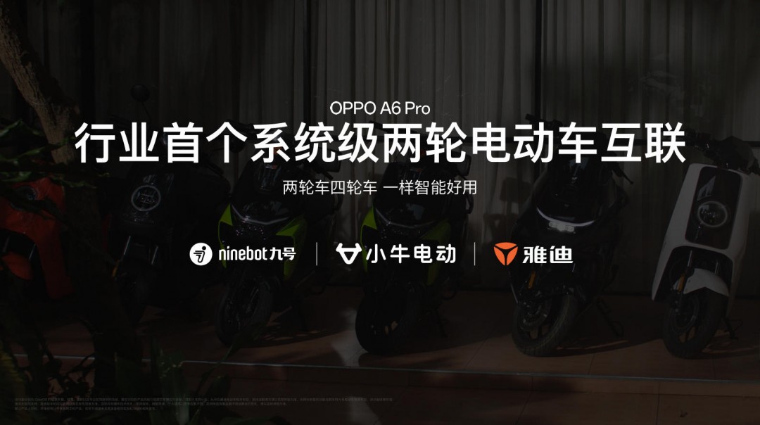 针对户外使用场景,尤其是面向外卖骑手、快递员等户外人群,OPPO A6 Pro 特别配备了 1400nits 超亮阳光屏、高能户外模式 2.0、全场景 NFC 及满级触控功能,阳光下屏幕清晰可见,配送接单更高效;此外,A6 Pro 还联合雅迪、九号、小牛等品牌,在行业内首次实现系统级两轮车互联,支持无感解锁、车辆倾倒提醒与无网查找,让出行更便捷智能,骑手跑单更高效安心。