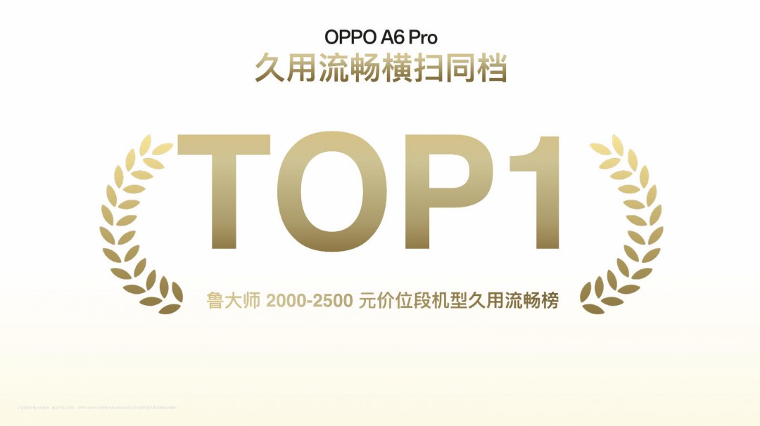 凭借这套软硬一体的“组合拳”,A6 Pro 成功通过了 OPPO 内部实验室最严苛的 72 个月老化流畅度测试,并一举荣登鲁大师实验室 2000-2500 元价位段久用流畅度排行榜榜首,实现久用流畅内外双认证。