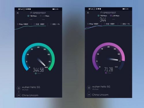 小编在办公楼附近使用Speedtest测试华为畅享20 Pro的5G上网速度,下载速度达到了344.58Mbps,上传速度为71.28Mbps。下班乘坐地铁路上,5G下载速度也能超过300Mbps,这也是得益于5G六频段技术。