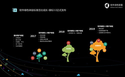 为了进一步规范当前市场上的手机应用,软件绿色联盟理事长杨泽民在大会开始时便官宣《软件绿色联盟应用体验标准3.0》正式发布。针对当前手机应用所存在的问题,软件绿色联盟集结顶级专家学者,分别从安全、功耗、性能、稳定性、兼容性五个方面入手对应用标准进行升级。相比前两个版本,绿标3.0要求更加严格、可靠,这将为应用软件发展点亮指路明灯,也为用户体验的进一步提升打下基础。