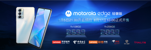 作为中国电信与联想集团首款深度合作云手机产品,摩托罗拉edge轻奢版8+128GB版本售价2599元,8+256GB版本2899元。8月5日21时在各渠道开启预约,8月17日10时正式开售。