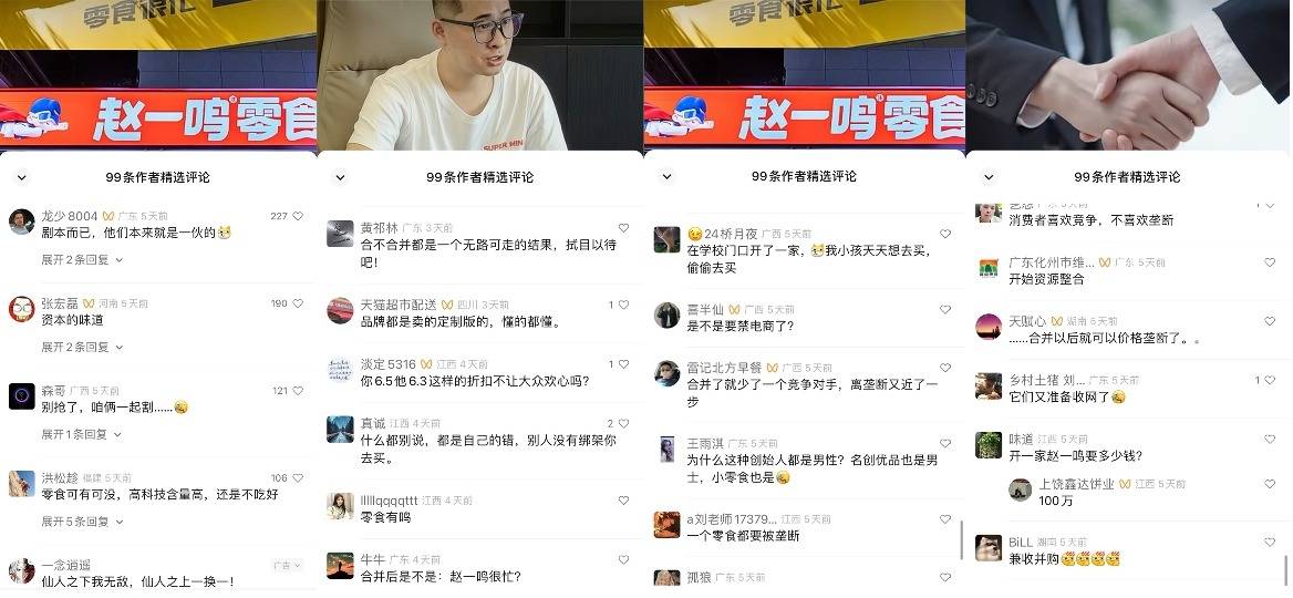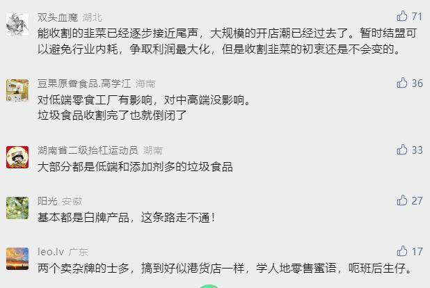 视频号“量贩零食产业促进会” 相关内容下的部分留言(左右滑动查看更多)