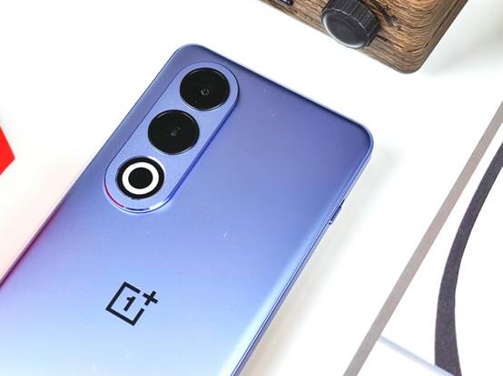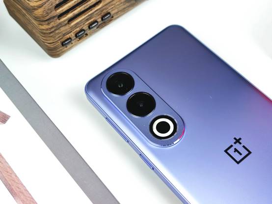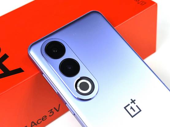 配色上,一加Ace 3V此次推出了「幻紫银」和「钛空灰」两款配色,笔者拿到的是其中的幻紫银配色版本,其采用了金属砂玻璃工艺,散发出一种旗舰金属质感,搭配独家高折膜片,紫银双色交相辉映;而且镜头Deco区采用了同色玻璃工艺,与背板颜色保持一致,进一步提升了观感。