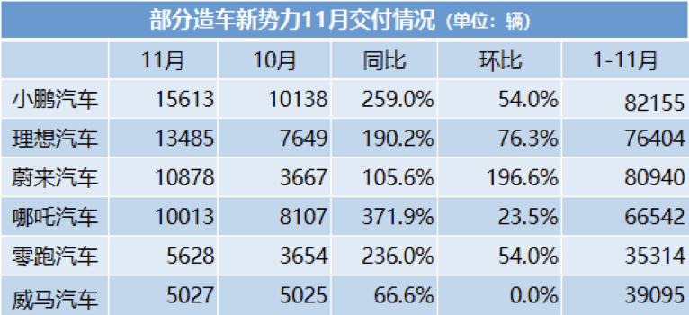 造车新势力11月交付量看点多多:小鹏蝉联第一、蔚来强势反弹 理想、哪吒销量首次破万快讯