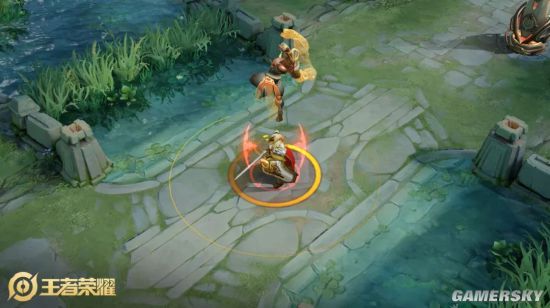 盘古朝指定位置跳跃,落地时对内圈的敌人造成伤害,如果落地时内圈没有敌人则获得50%的加速效果。如果落地时外圈有敌方英雄,盘古会立即冲向敌人,如果在冲刺路径上遇到敌方英雄会将敌人击退并造成伤害同时自己停下。