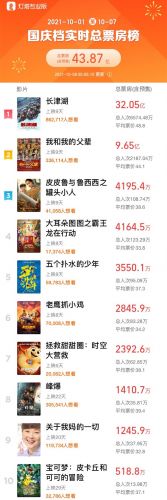 【TechWeb】10月8日消息,7天,总票房43.87亿元,这是2021年国庆档交出的成绩单。