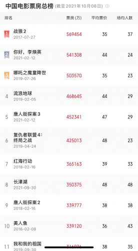 现在,人们关注的焦点是《长津湖》能否取代《你好,李焕英》成为2021年内地票房冠军。截至发稿,《长津湖》票房突破35亿元,在中国电影票房总榜排第八名。