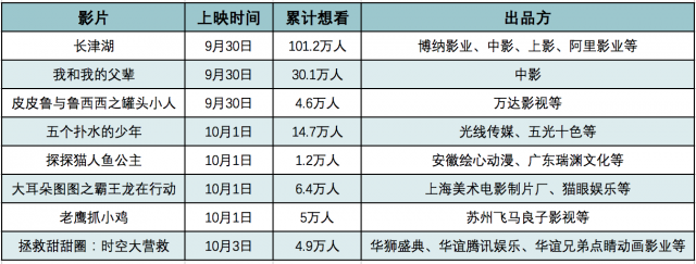 业内人士指出,今年国庆档整体表现好于预期,不过影片分化相比往年更加加剧。上映的8部影片,类型相对单一,主要为主旋律影片和动画电影两大类。